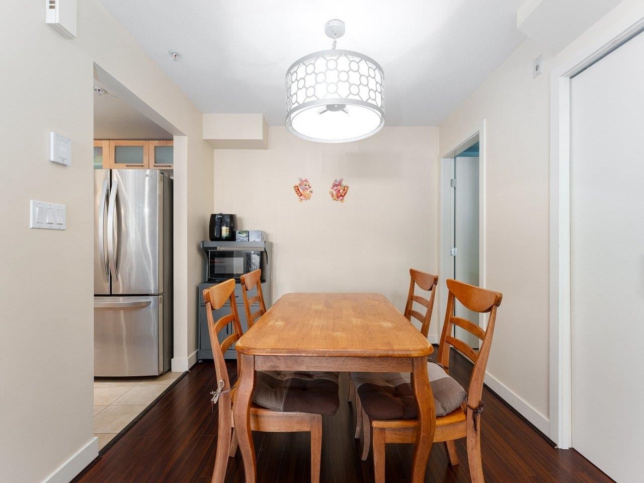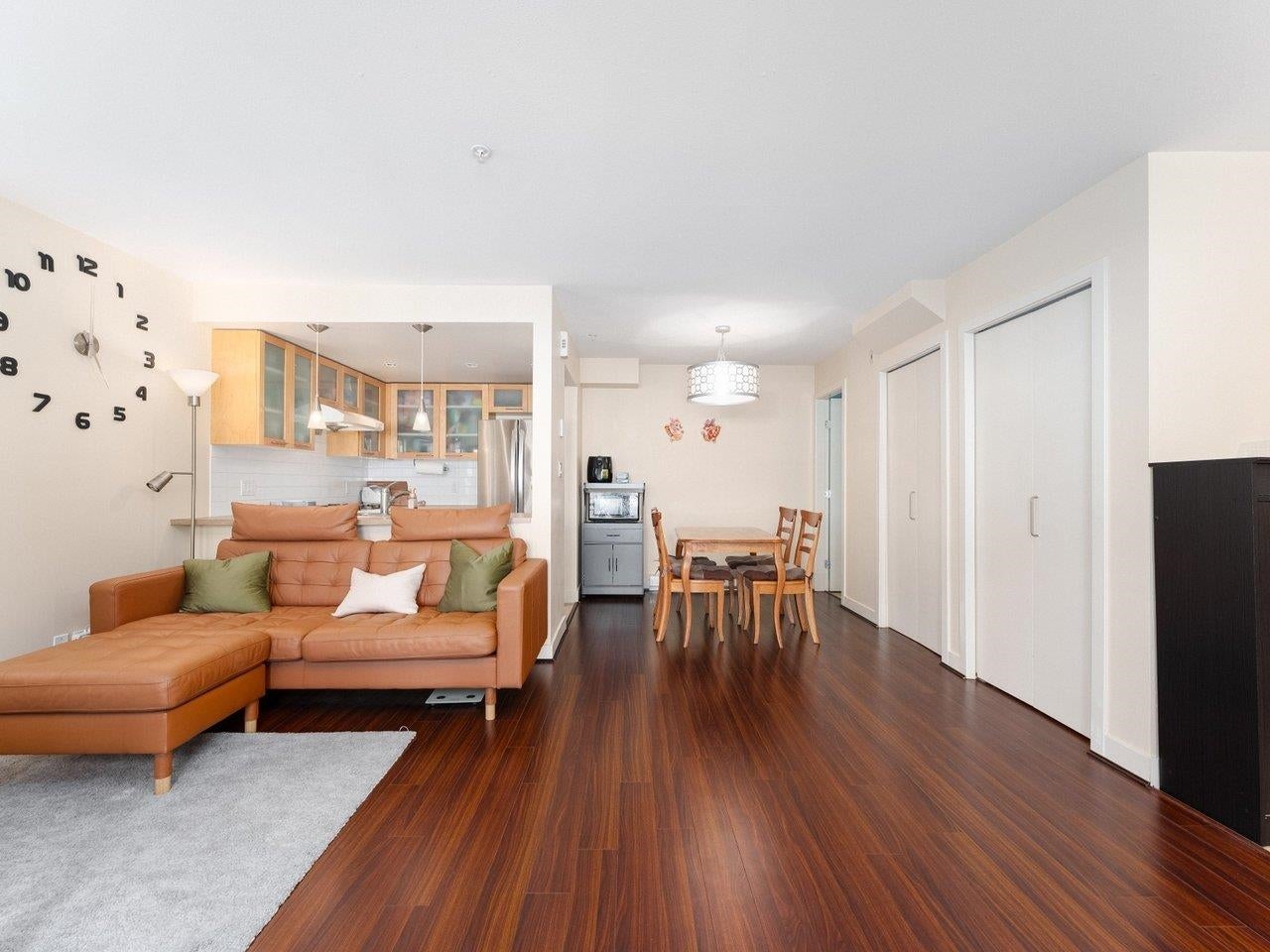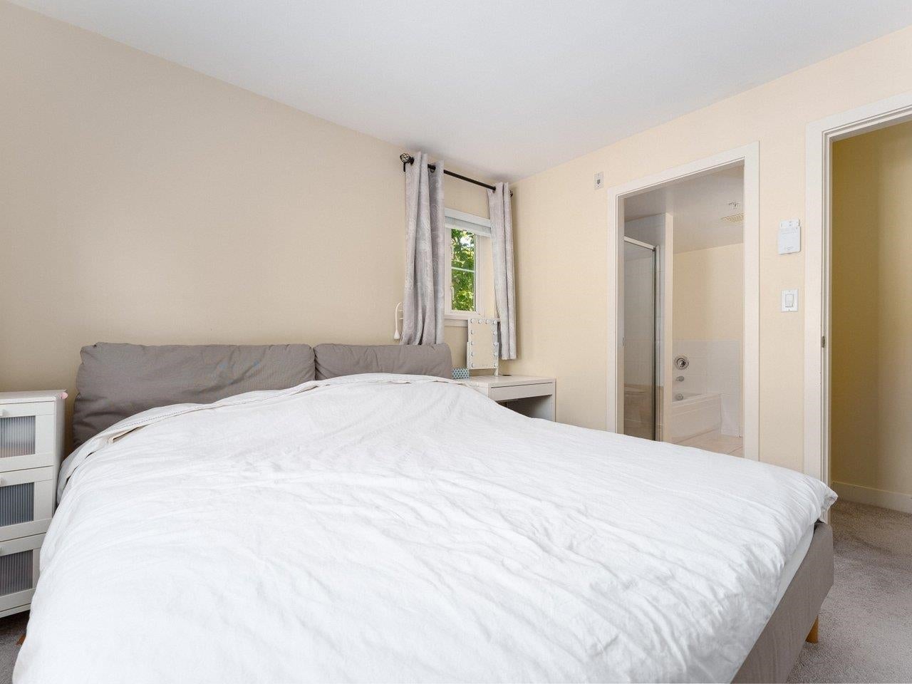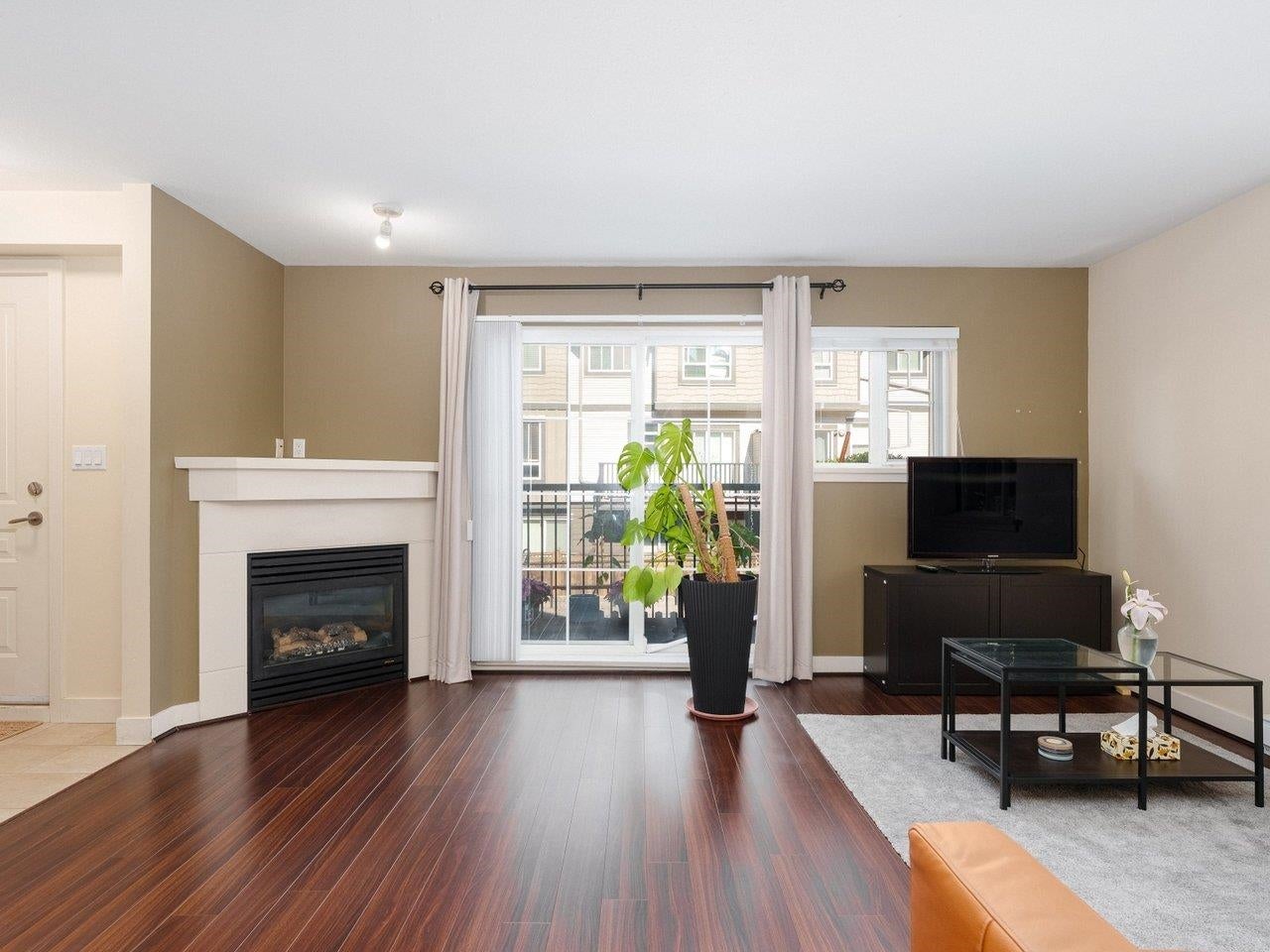 Welcome to this beautifully maintained 2-bedroom, 2.5-bath end-unit townhouse in the sought-after Trellaine complex. Facing South & East, this bright 2-level home features an open-concept kitchen, gas fireplace, smart home upgrades including thermostats throughout, private balcony, in-suite laundry, and a storage locker. Ideally located across from a park and next to Anderson Elementary & A.R. MacNeill Secondary, offering a family-friendly, walkable setting. Ample street parking on a tree-lined street plus 1 secure underground parking stall. Amenities include a clubhouse, gym, and playground. Steps to transit, schools, and shopping — a must-see.